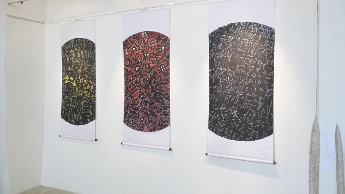 Cette exposition propose une série de variations nées de la rencontre avec l’œuvre poétique de Han Yong-Un, Le Silence de Nim. Lisant et relisant ces poèmes, le cercle s’est imposé à moi comme la forme la plus adéquate pour recevoir l’écho de cette poésie où tous les termes se transforment les uns dans les autres en un mouvement incessant.