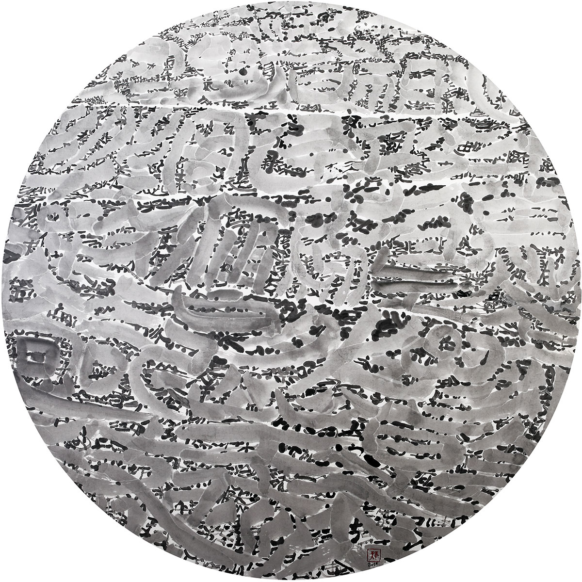 Ciel – Terre, un seul nid (3), encre de Chine et pigments naturels sur papier de mûrier, diamètre 140 cm, 2017