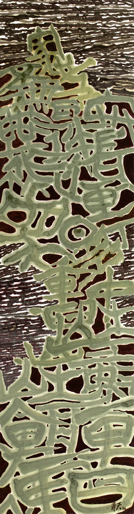 Nuages Montagnes, 137 cm x 35 cm, encre de Chine et pigments naturels sur papier de mûrier, 2016.