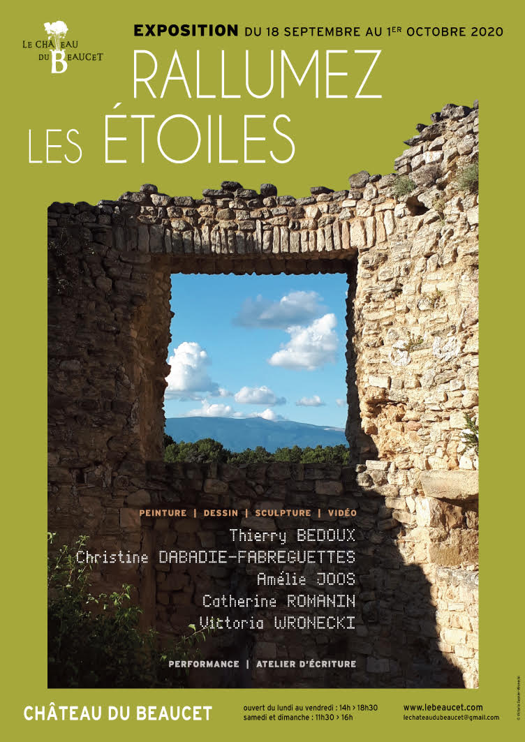 Du 3 au 9 juillet 2022 Exposition Christine Dabadie-Fabreguettes et Luc Rouault VERNISSAGE LUNDI 4 JUILLET à 19H Salle de la MairieLe Village, 26570 Montbrun-les-Bains Horaires : Tous les jours : de 10h à 13h et de 16h à 19h Le samedi : 9h > 13h - 16 > 19h Voir les oeuvres "Shamans"