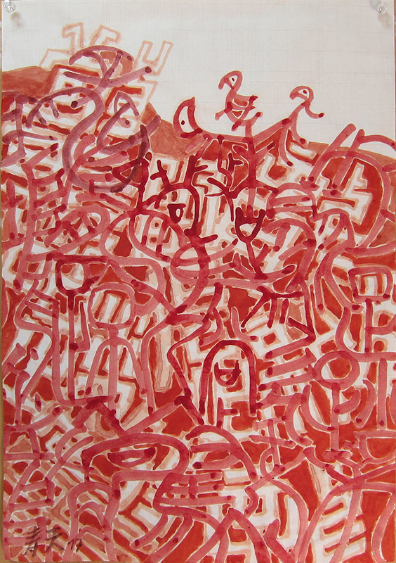 Cette série est un hommage à Zhang Xu, dit Zhang-le-fou, immense calligraphe de l’époque des Tang (7-8èmes siècles). Elle fait écho à un poème de Jiaoran qui compare la calligraphie de Zhang Xu à des dragons fougueux galopant et voltigeant, dégringolant et remontant.
